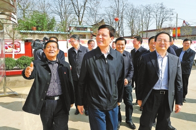 3月27日,省委书记、省人大常委会主任谢伏瞻在许昌市建安区椹涧乡前宋村考察基层党建工作。